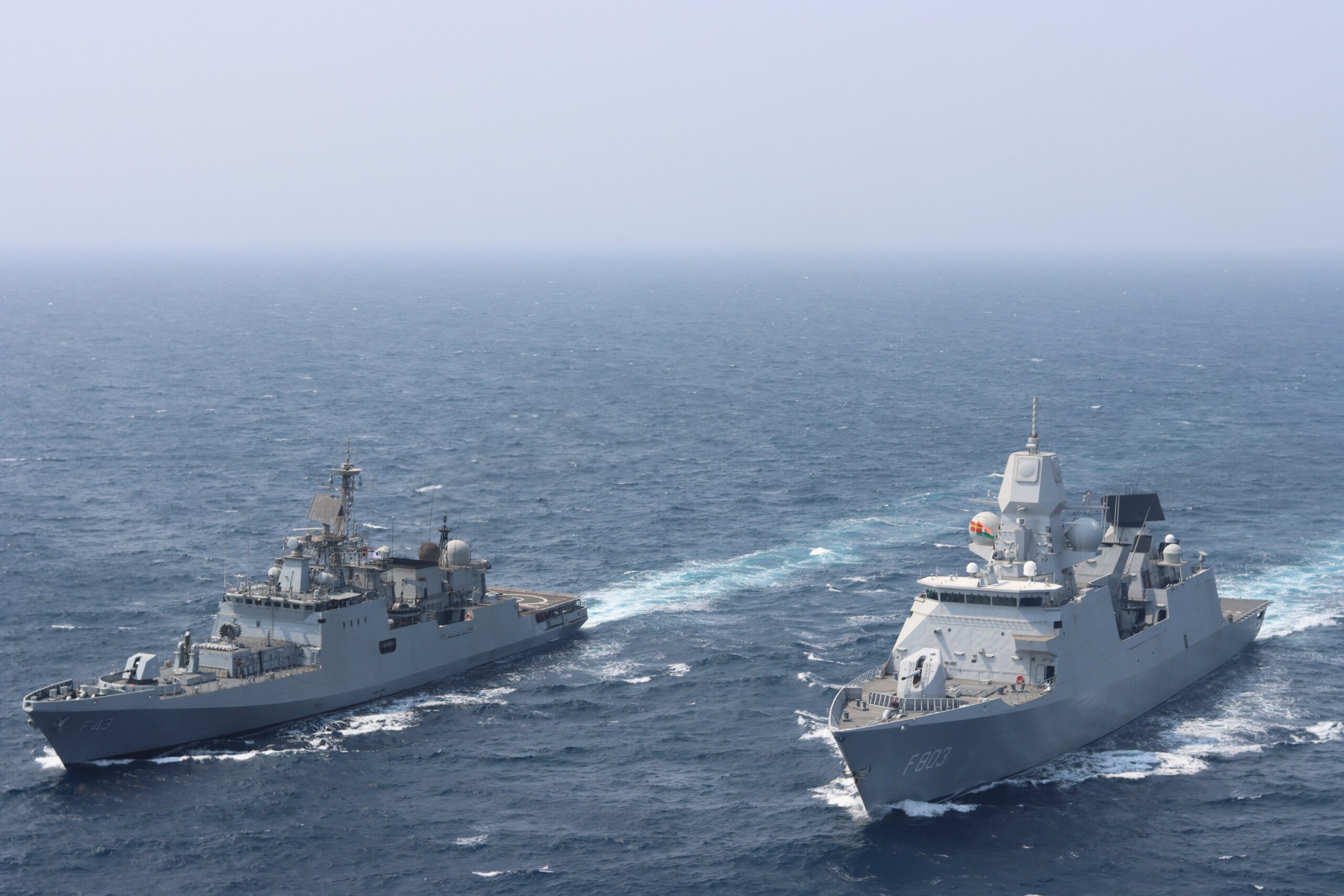 भारत आणि नेदरलँड्स संयुक्त नौदल सरावाचे छायाचित्र.
