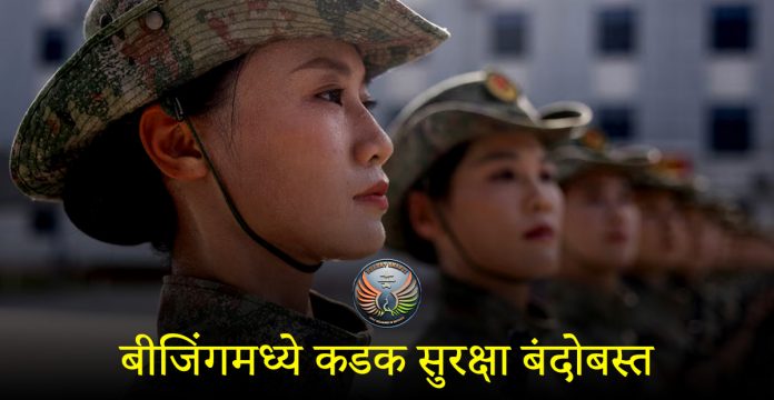बीजिंगने, 3 सप्टेंबर रोजी होणाऱ्या 70 मिनिटांच्या लष्करी परेडच्या पार्श्वभूमीवर, शहरातील मध्यवर्ती भाग पूर्णपणे ठप्प केला आहे. कार्यालयांच्या प्रवेशद्वारांवर विमानतळाप्रमाणे स्कॅनर लावण्यात आले आहेत, मध्यरात्री परेडच्या सरावांसाठी रस्ते बंद करण्यात आले आहेत, ओव्हरपासवर 24/7 सुरक्षा तैनात आहे आणि ड्रोनच्या वापरावर बंदी घालण्यात आली आहे.