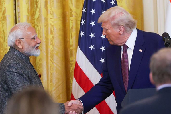 पंतप्रधान नरेंद्र मोदी अमेरिकेचे अध्यक्ष डोनाल्ड ट्रम्प यांच्यासोबत.