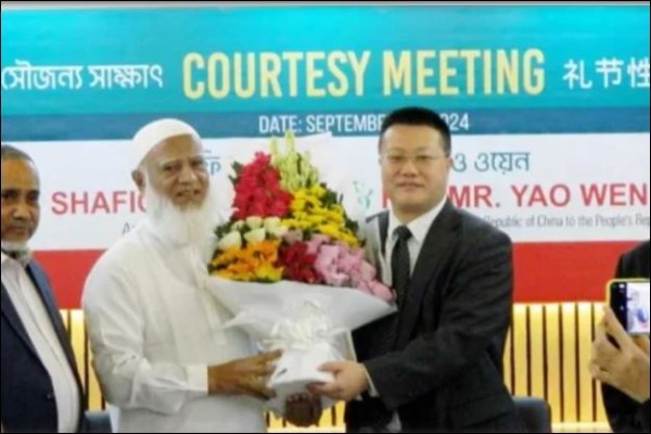 जमातचे प्रमुख शफीकुर रहमान, ढाका येथे एका चिनी राजदूताची भेट घेत आहेत.