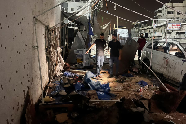 11 ऑगस्ट 2025 रोजी गाझा शहरात इस्रायली हल्ल्याच्या जागेची पॅलेस्टिनी लोक तपासणी करतात जिथे अल जझीराने म्हटले आहे की त्याचे पत्रकार अनस अल शरीफ, मोहम्मद क्रेकेह आणि तीन छायाचित्रकार मारले गेले. (रॉयटर्स/इब्राहिम हज्जाज)