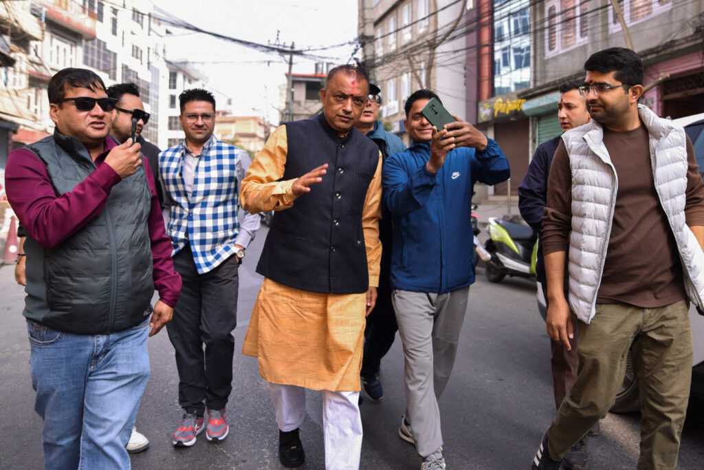 पंतप्रधानपदाचे उमेदवार आणि नेपाळी काँग्रेस पक्षाचे अध्यक्ष गगन कुमार थापा, नेपाळमधील काठमांडू येथे 5 मार्च 2026 रोजी झालेल्या सार्वत्रिक निवडणुकीदरम्यान मतदान करण्यासाठी मतदान केंद्रावर जाताना. (रॉयटर्स/मोनिका मल्ला)