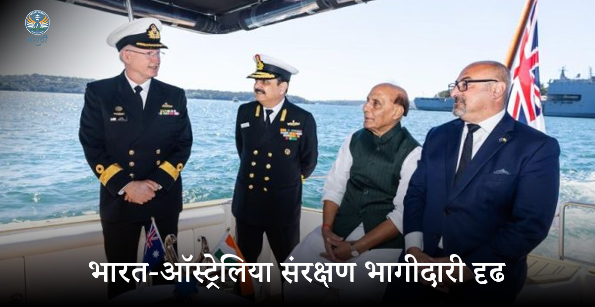 संरक्षणमंत्री राजनाथ सिंह यांनी त्यांच्या ऑस्ट्रेलिया दौऱ्यादरम्यान, ‘HMAS Kuttabul‘ या धोरणात्मक नौदल सुविधेला भेट दिली आणि सिडनी येथे झालेल्या पहिल्या भारत-ऑस्ट्रेलिया संरक्षण उद्योग गोलमेज परिषदेचे सह-अध्यक्षपद भूषवले. यावेळी दोन्ही देशांनी, इंडो-पॅसिफिक प्रदेशात सुरक्षा मजबूत करण्यासाठी परस्पर औद्योगिक सहकार्य, नवोन्मेष आणि तंत्रज्ञान भागीदारी वाढविण्याच्या आपल्या संकल्पाचा पुनरूच्चार केला.