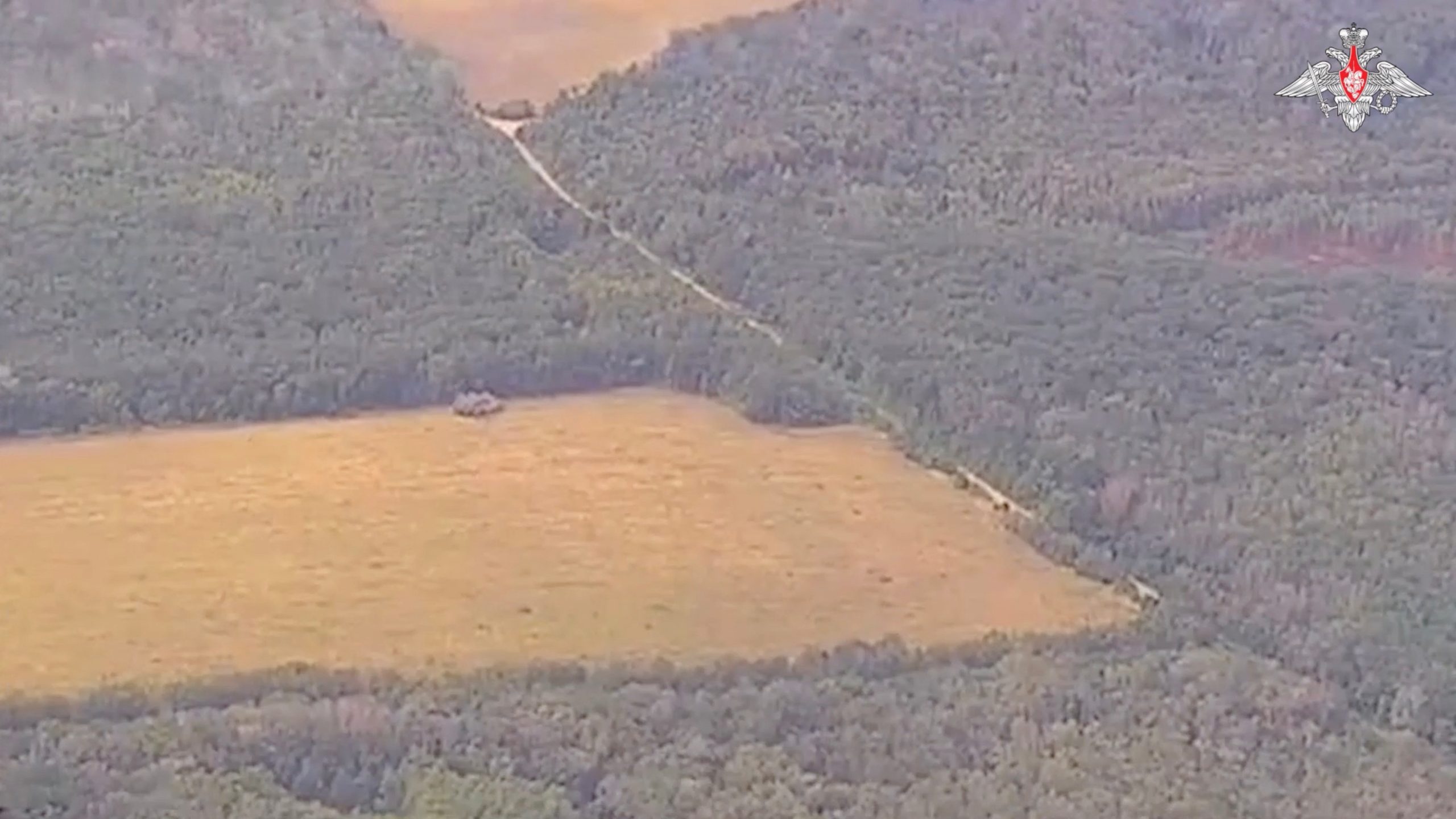 A view shows what is said to be a Russian army strike on Ukrainian military hardware in the area bordering Ukraine in the Kursk Region.via REUTERS