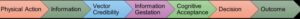 Credibility of Vector Theory (CoVT) posits that the effectiveness of a cognitive operation is directly proportional to the perceived credibility of the vector delivering the information. The flow of activity for the action to outcome can be graphically explained as follows: