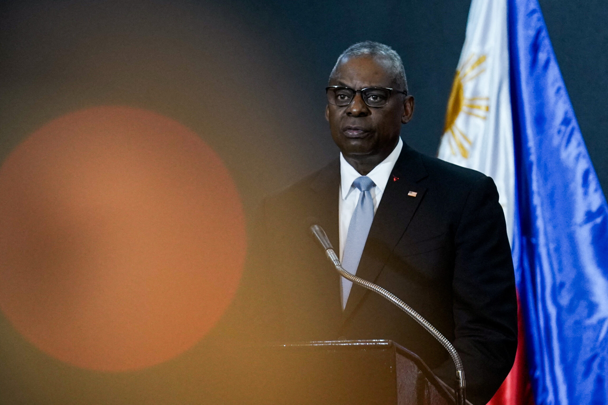 U.S. Secretary of Defense Lloyd Austin speaks during a joint press conference at Camp Aguinaldo, in Quezon City, Metro Manila, Philippines, July 30, 2024. REUTERS/Lisa Marie David
